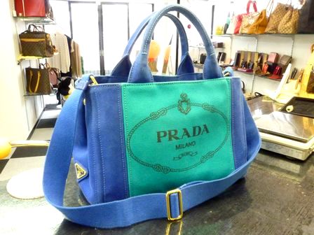 特にブルー×ターコイズブルーはプラダの海外正規店でないと、