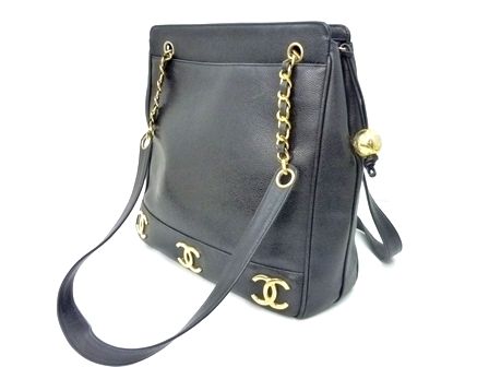 こちらのシャネルショルダーはブラックのキャビアスキンに、
